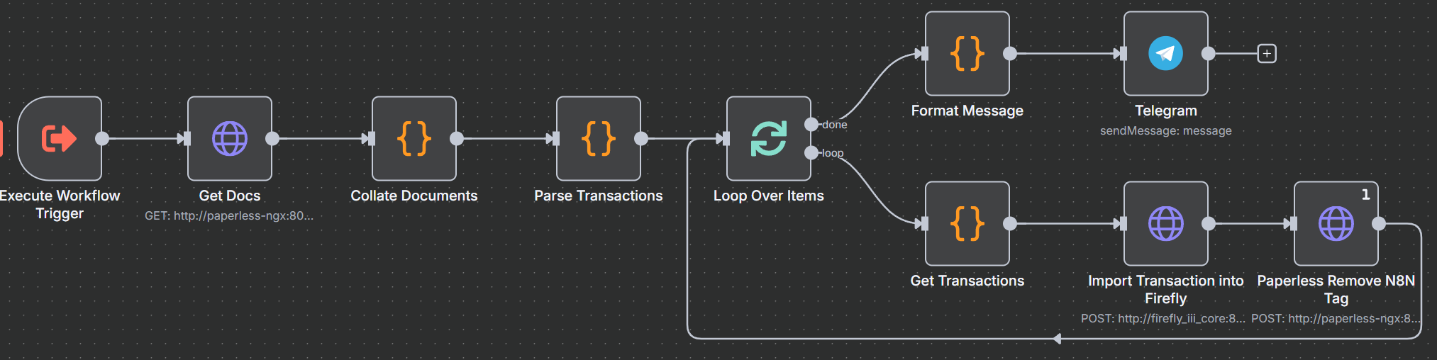 The purpose of the Import Transaction workflow is to import transactions into my expense tracker, Firefly.